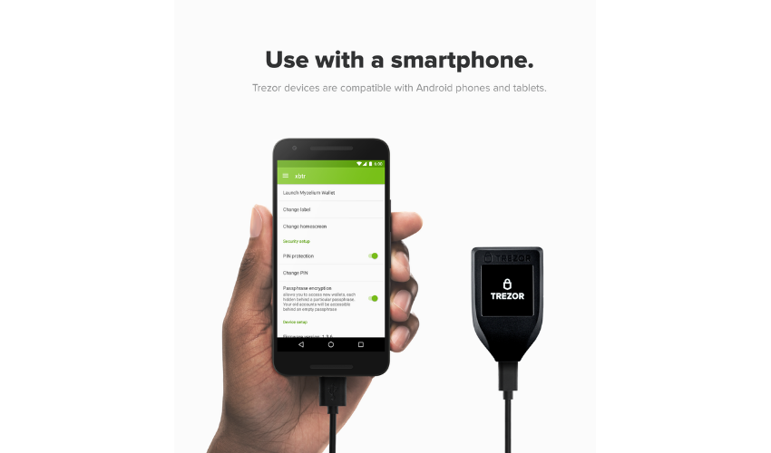 Trezor currently does not have a mobile app, but the company plans to introduce one soon. However this wallet is compatible with android devices. The Trezor Suite is a desktop application, which gives you access to portfolio information and the incorporated crypto trading platform.